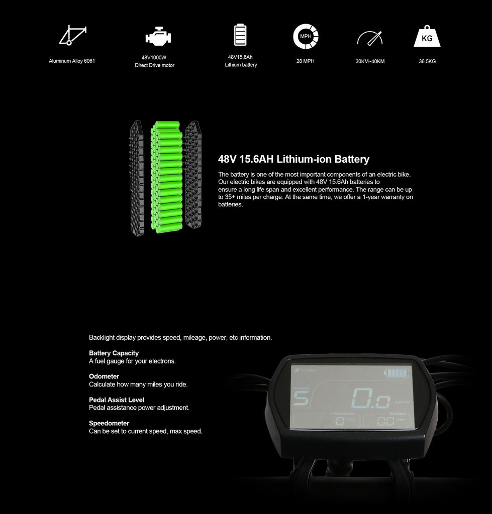 Range Per Charge: 19~25 MI / 30 KM ~ 40 KM